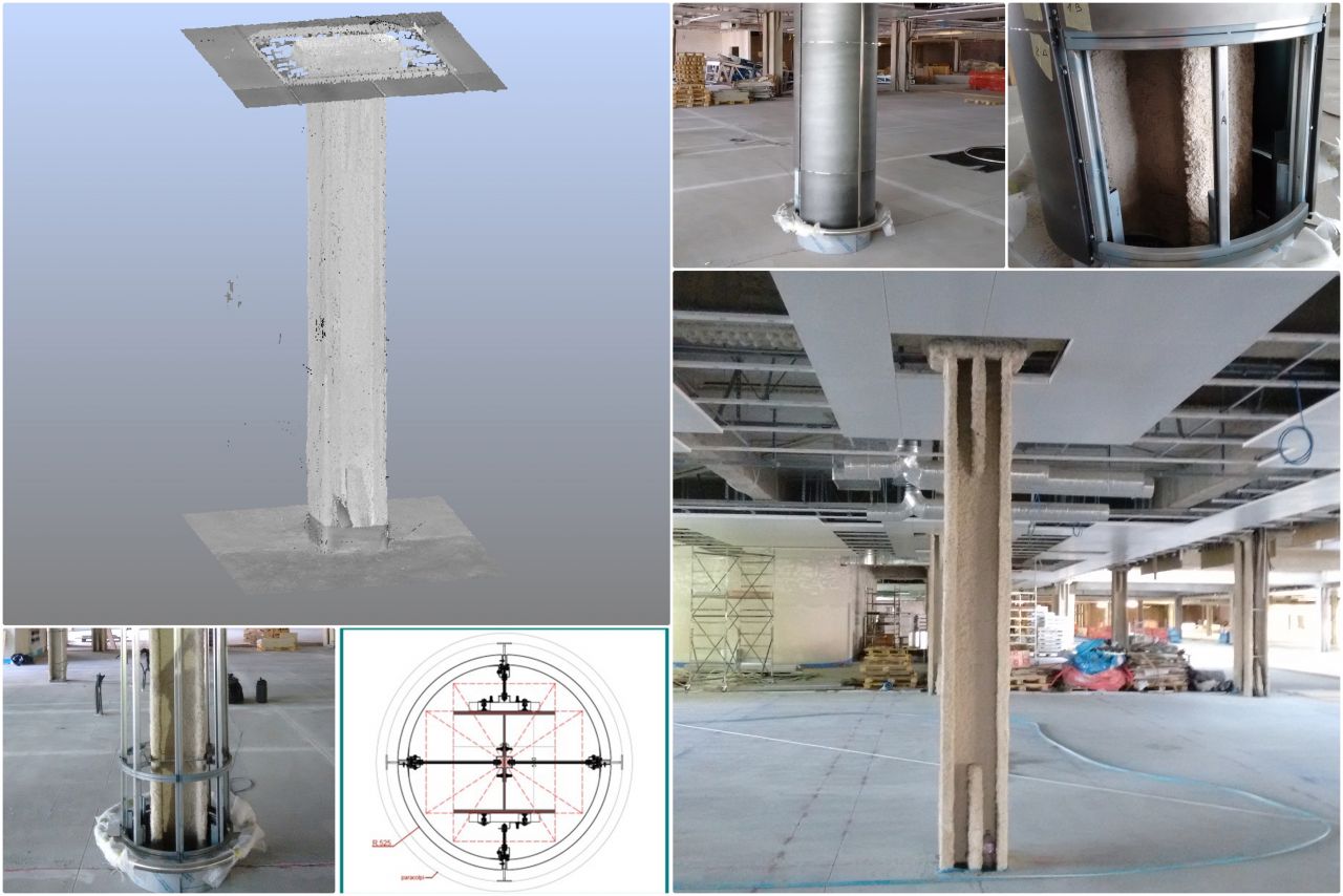 Il rilievo ha inoltre consentito di misurare gli elementi di carpenteria del terminal, quali colonne e travi ove era prevista la realizzazione di rivestimenti con finiture in lamiera metallica sagomata, realizzando modelli di dettaglio per lo sviluppo del progetto.