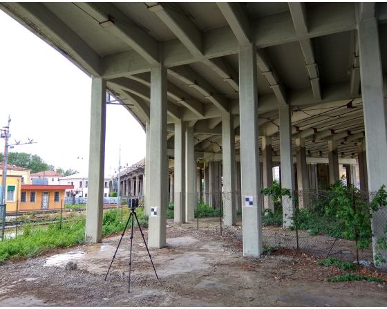 Il rilievo è stato commissionato al fine di comprendere la mutua interazione e posizione delle travi che compongono corpi diversi in corrispondenza di uno svincolo del viadotto di Mestre, per il successivo progetto di consolidamento.